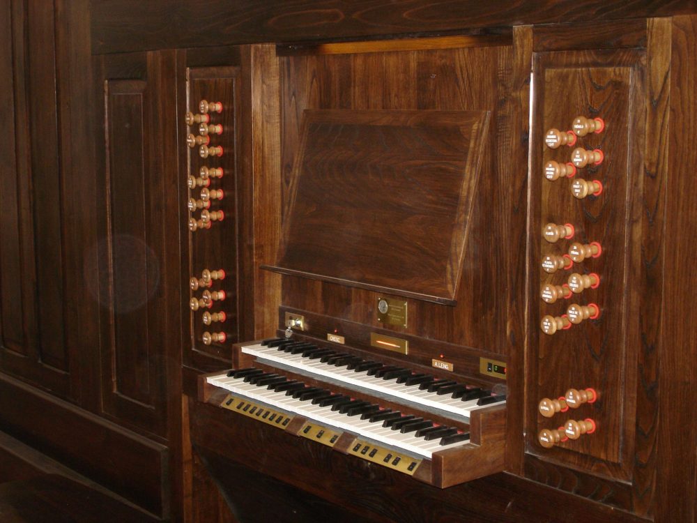 - Dos teclados manuales de 56 notas (Do-sol).Pedalero de 30 notas (Do-fa)